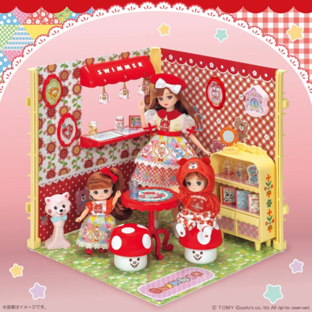 SWIMMERの雑貨商品である「シャポードール(帽子たて)」や「フラワーミラー」がリカちゃんサイズで再現されています。壁紙やお部屋の家具にも、SWIMMERファンには見逃せないデザインがあしらわれています。