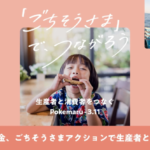 こちらは少し長い期間で実施されます。対象期間中に投稿された「ごちそうさま投稿」1件につき10円が、ポケマル生産者支援金としてプールされます。商品が届いた後、感謝の気持ちを伝える「ごちそうさま投稿」をするだけで、生産者さんへのエールと支援につながるのです。普段の感謝の気持ちが、生産者さんへの大きな励ましになるって、素敵だと思いませんか?