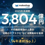 GMOメイクショップが提供するEC構築SaaS「makeshop byGMO」は、2025年の年間流通額が3,804億円(前年比110.9%)に達し、過去最高を更新しました。これにより、国内のEC構築SaaS業界において14年連続で年間流通額No.1を達成したとのことです。これはEC構築サービス運営企業各社の発表数値より、SaaS型の数値を比較したものです。