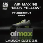 「AIR MAX 95 BIG BUBBLE “NEON”」は、ABC-MARTアプリによる事前抽選販売となります。実店舗へのお問い合わせはできないとのことなので、ご注意ください。